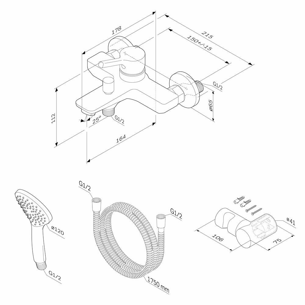 Смеситель для ванны и душа с душевым набором AM.PM X-Joy S F85B15000 один режим душа