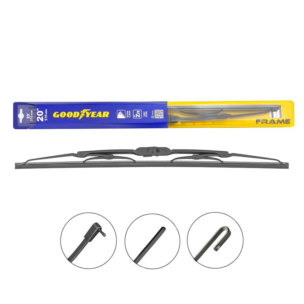 Каркасная щетка стеклоочистителя Goodyear FRAME 20"/51 cm, Дворник для автомобиля (3 переходника в комплекте)