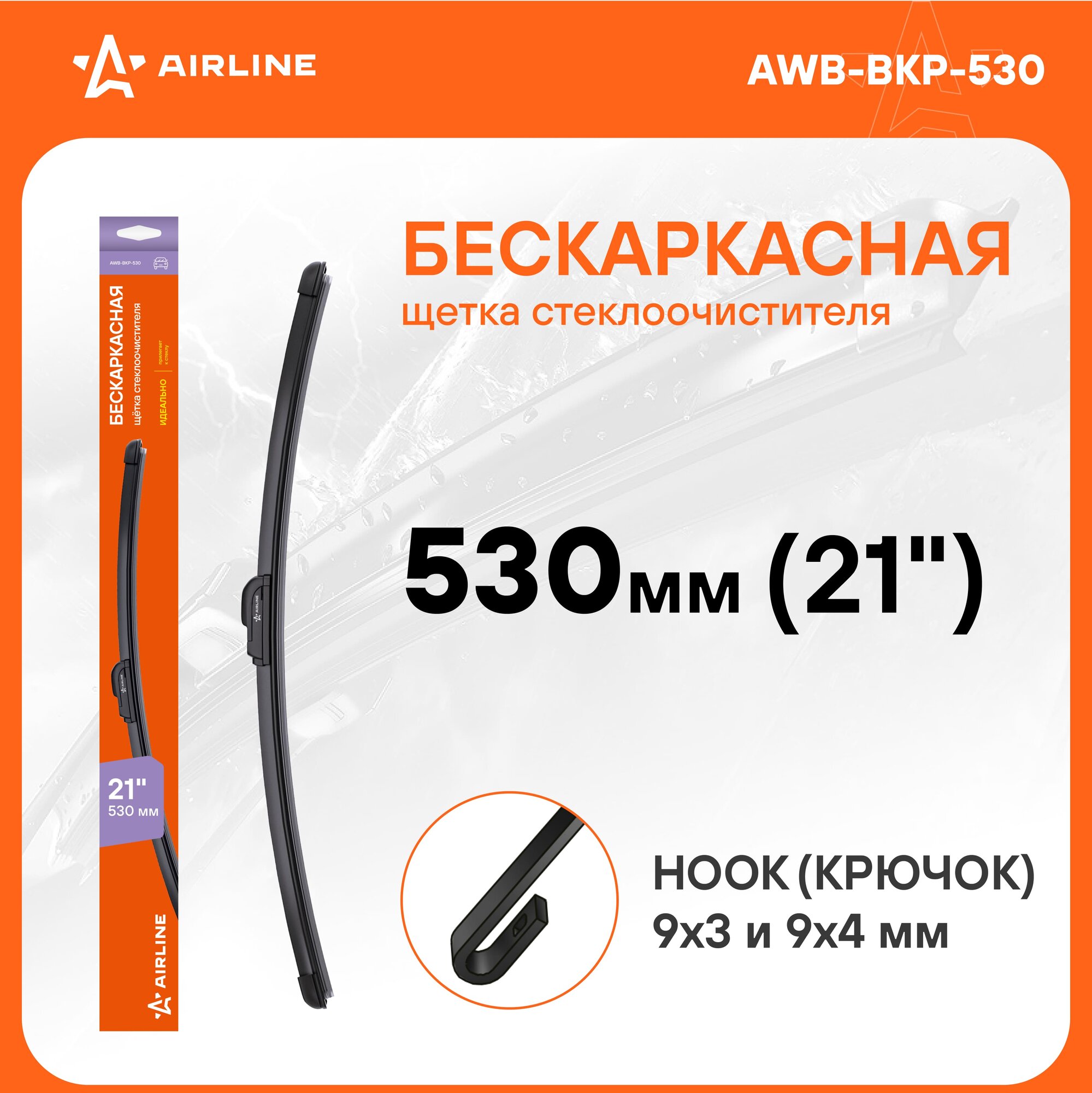 Купить Щетка стеклоочистителя 530мм (21") бескаркасная, 1 адаптер (Hook 9x3, 9x4 mm - Крючок 9x3, 9x4 мм) AWB-BKP-530 AIRLINE