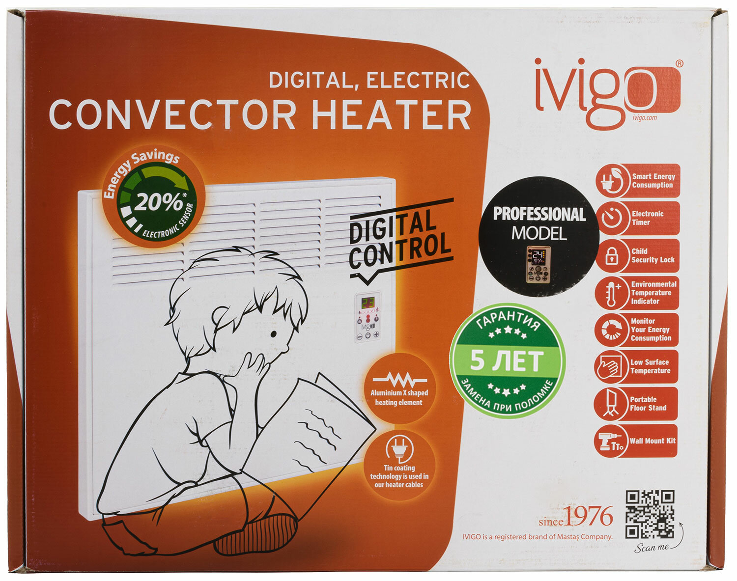 Конвектор IVIGO EPK Pro EPK4590P20, 2000Вт, с терморегулятором, белый
