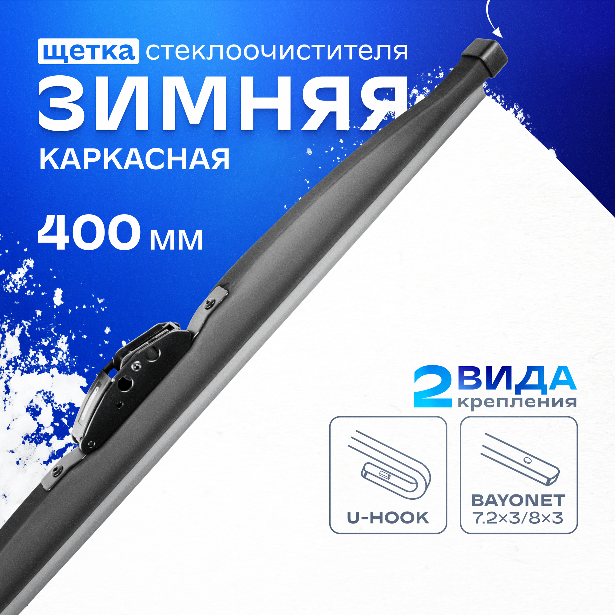 Купить Щетка стеклоочистителя зимняя SKYWAY 400 мм каркасная, 2 адаптера (крючок, штык) S02703004