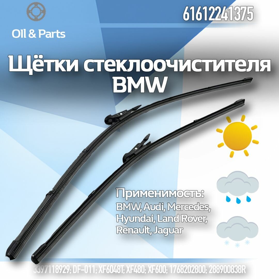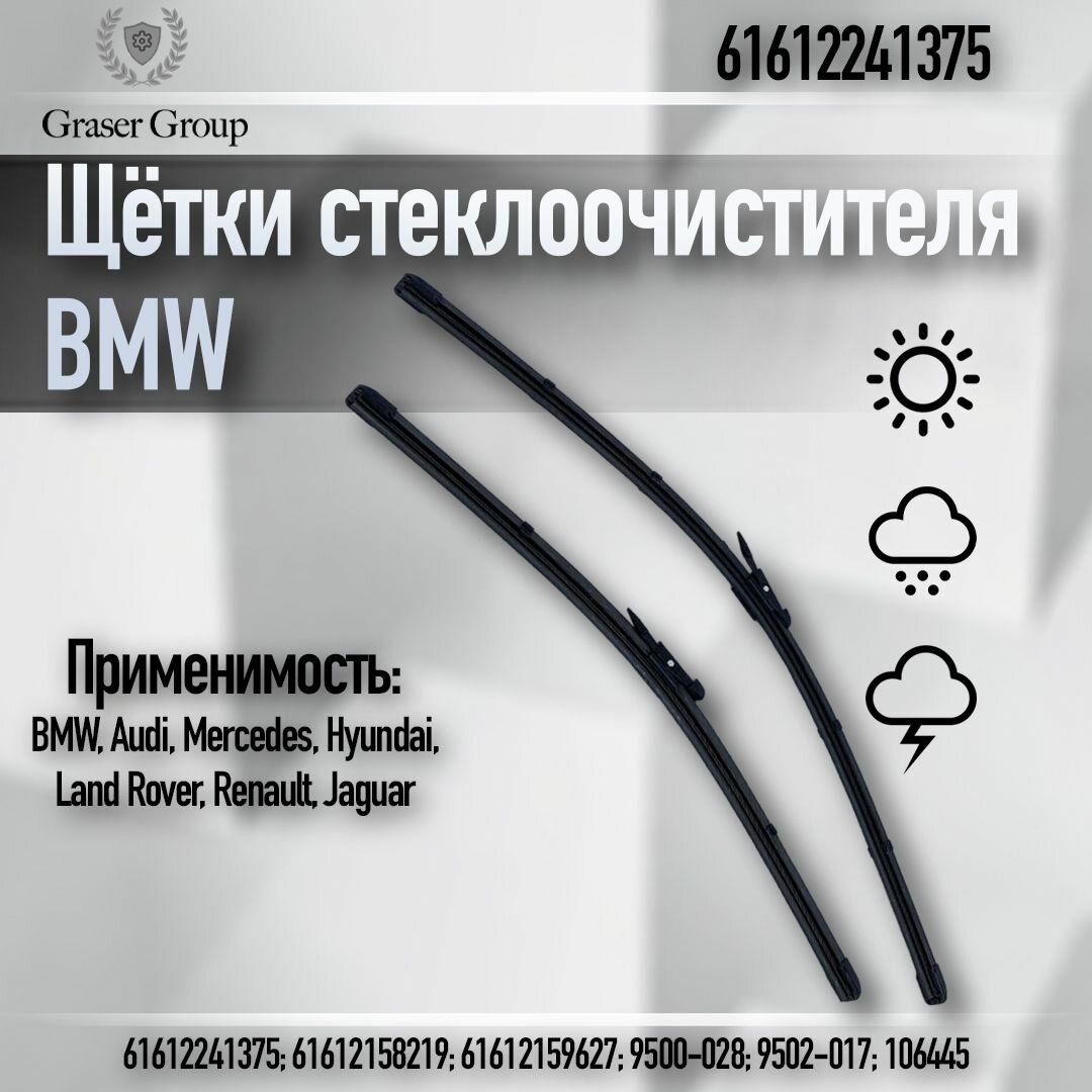 Оригинальные щетки стеклоочистителя бескаркасные 600/475мм БМВ / BMW / арт. 61612241375