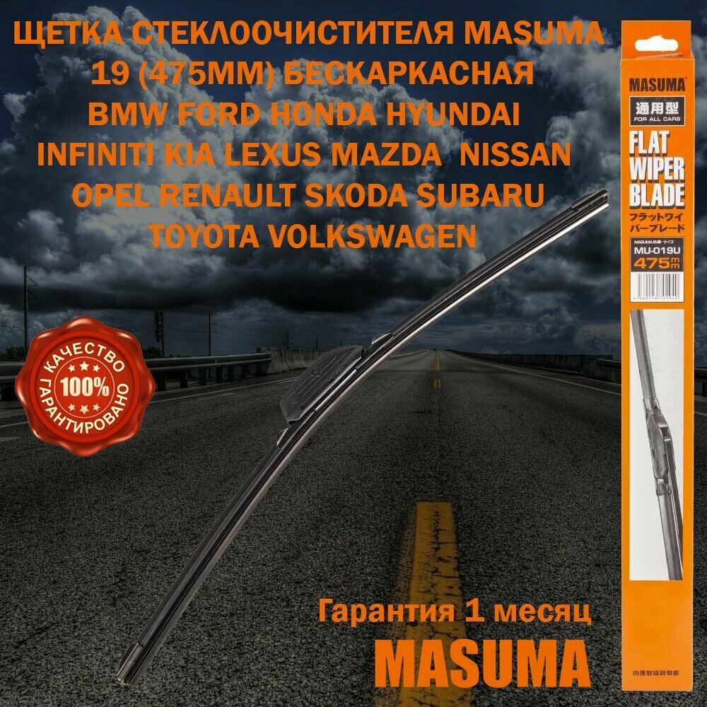 Щетка Стеклоочистителя Masuma 19 (475мм) Бескаркасная MU-019U BMW CHEVROLET FORD HONDA HYUNDAI INFINITI ISUZU KIA LEXUS MAZDA MITSUBISHI NISSAN OPEL RENAULT SKODA SUBARU SUZUKI TOYOTA VOLKSWAGEN