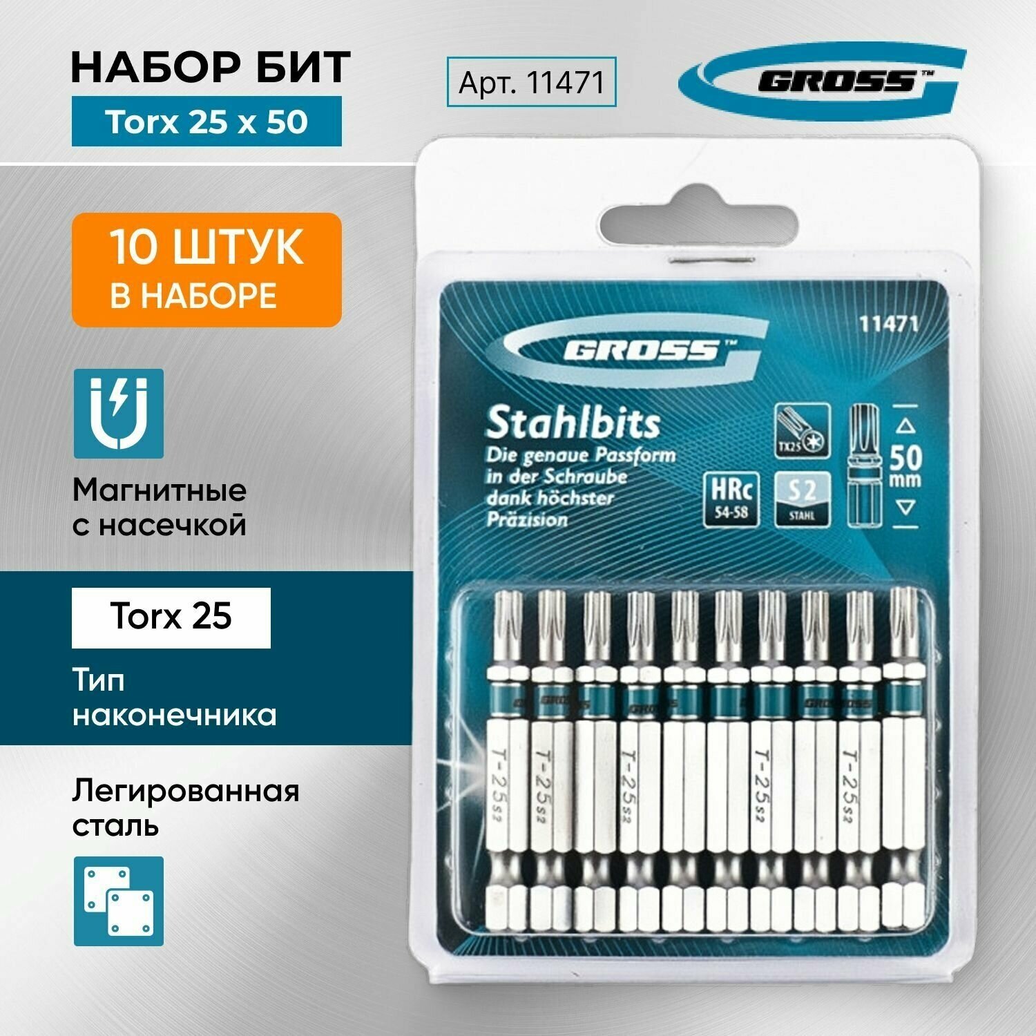 Набор бит TORX (Т25; 50 мм) 10 шт. GROSS 11471