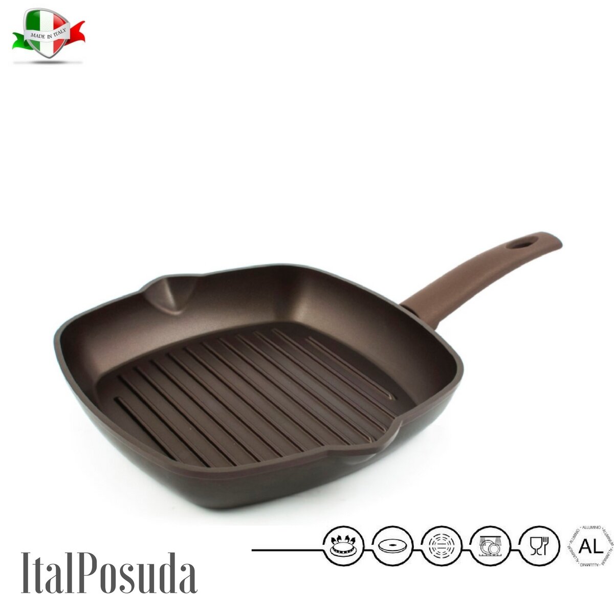 Сковорода- гриль TimA "СУ-Шеф" 26х26см с двухслойным антипригарным покрытием «GREBLON NON-STICK С2+ Cooper» (Германия)