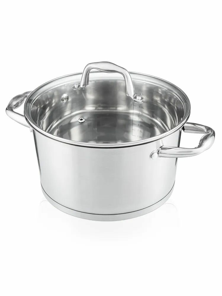 Кастрюля 5,8л BERLIN капс дно, стекляная крышка, мерная шкала, зерк полир (нержавеющая сталь)