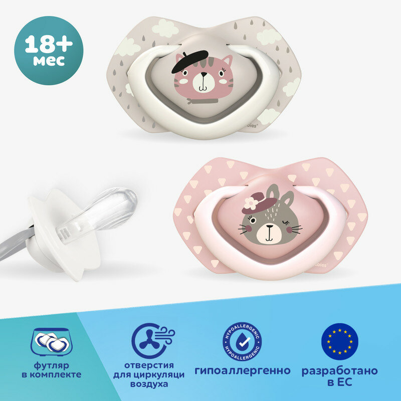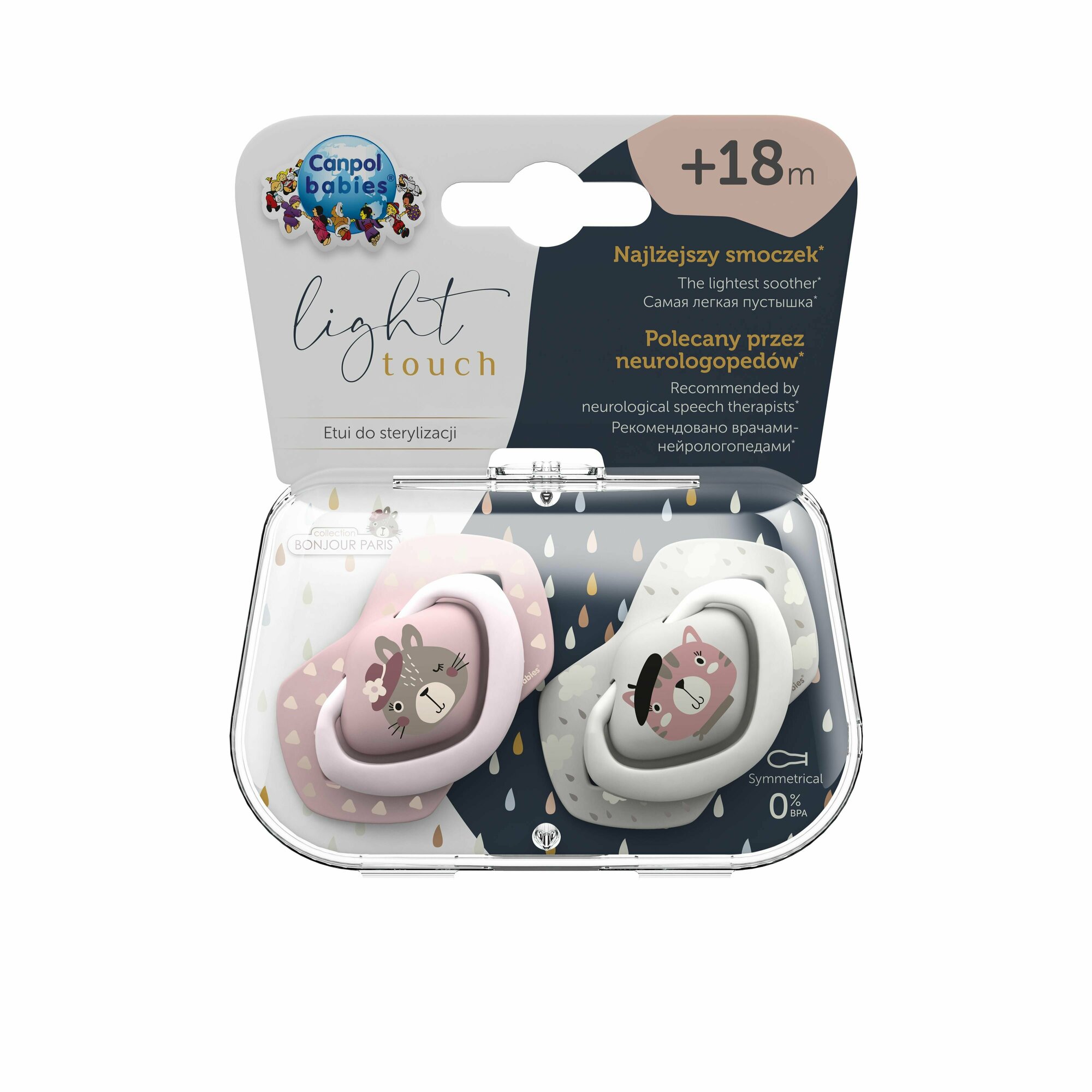 Пустышки Canpol Baby Bonjour Paris 18+ мес, 2шт с футляром, бежевый / розовый