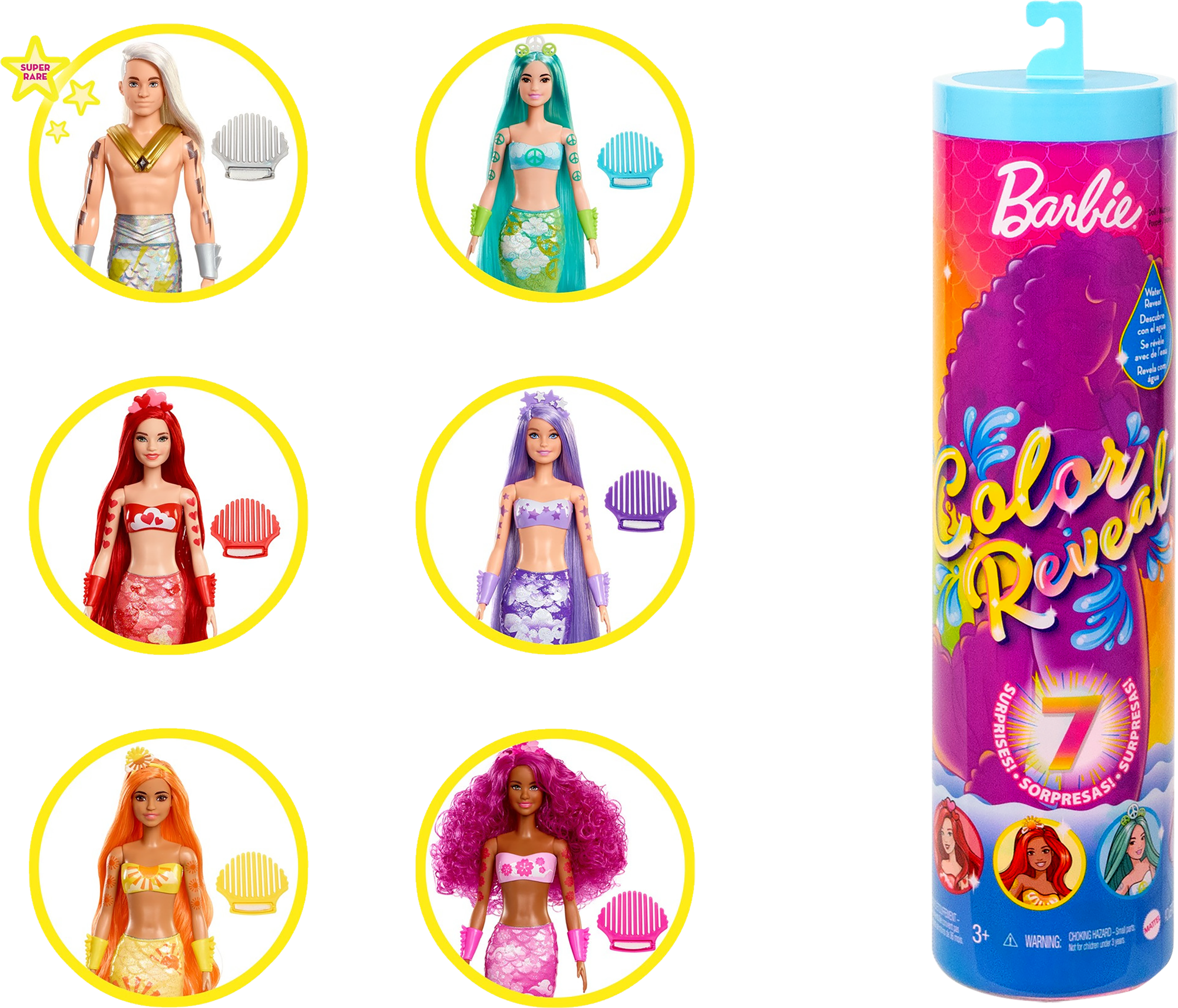 Купить Кукла-сюрприз Barbie Color Reveal Rainbow Mermaid Series, HCC46 разноцветный