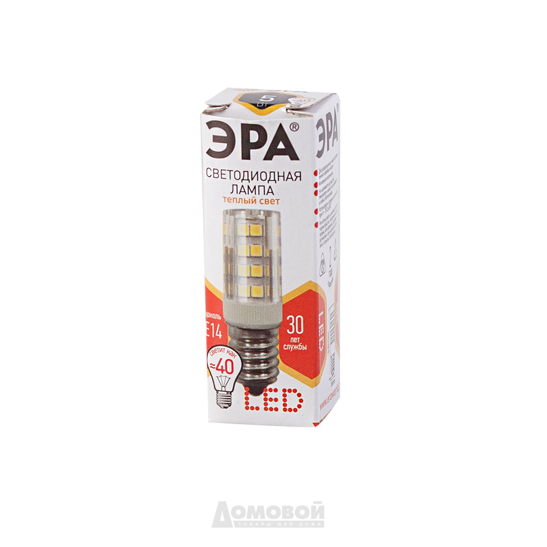 Лампа для холодильника 5Вт Е14 (диодная) ЭРА тёплая, форма-кукуруза Б0033030