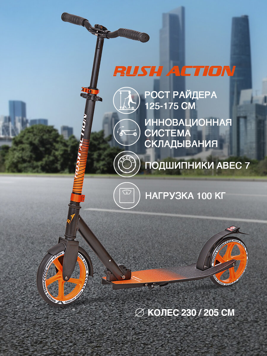 Самокат городской двухколесный RUSH ACTION 230/205 orange интересное: