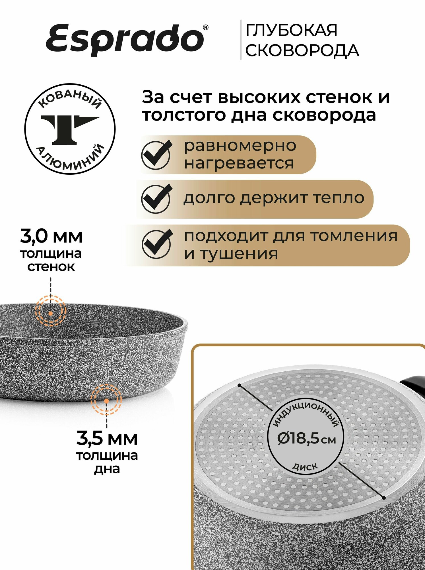 Сковорода , сковородка , сковорода 24 см , сковорода из алюминия, сковорода для индукционной плиты, сковорода с антипригарным покрытием, сковорода глубокая Frontera Esprado