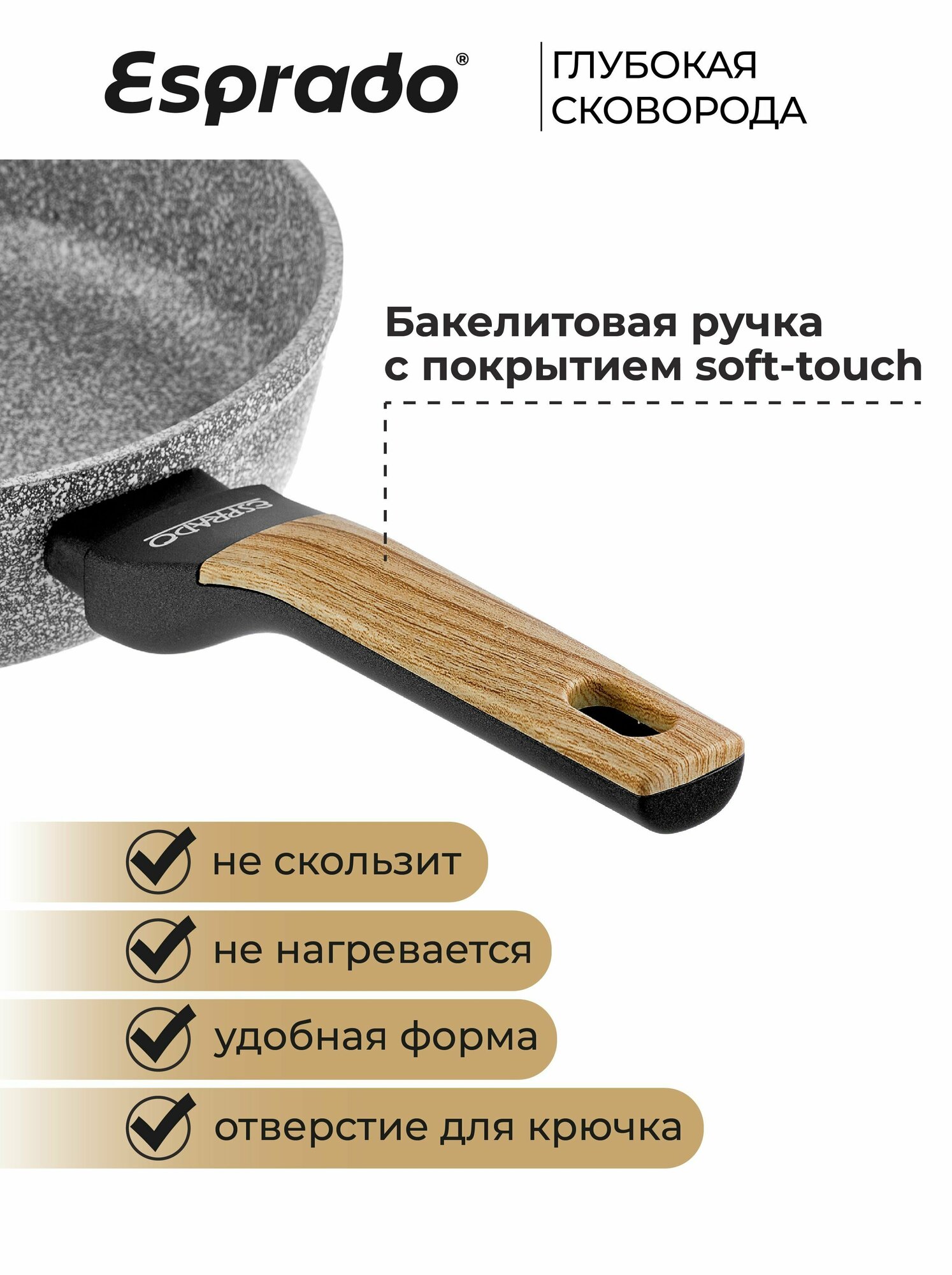 Сковорода Esprado Frontera из алюминия с антипригарным покрытием, индукция, 24 см