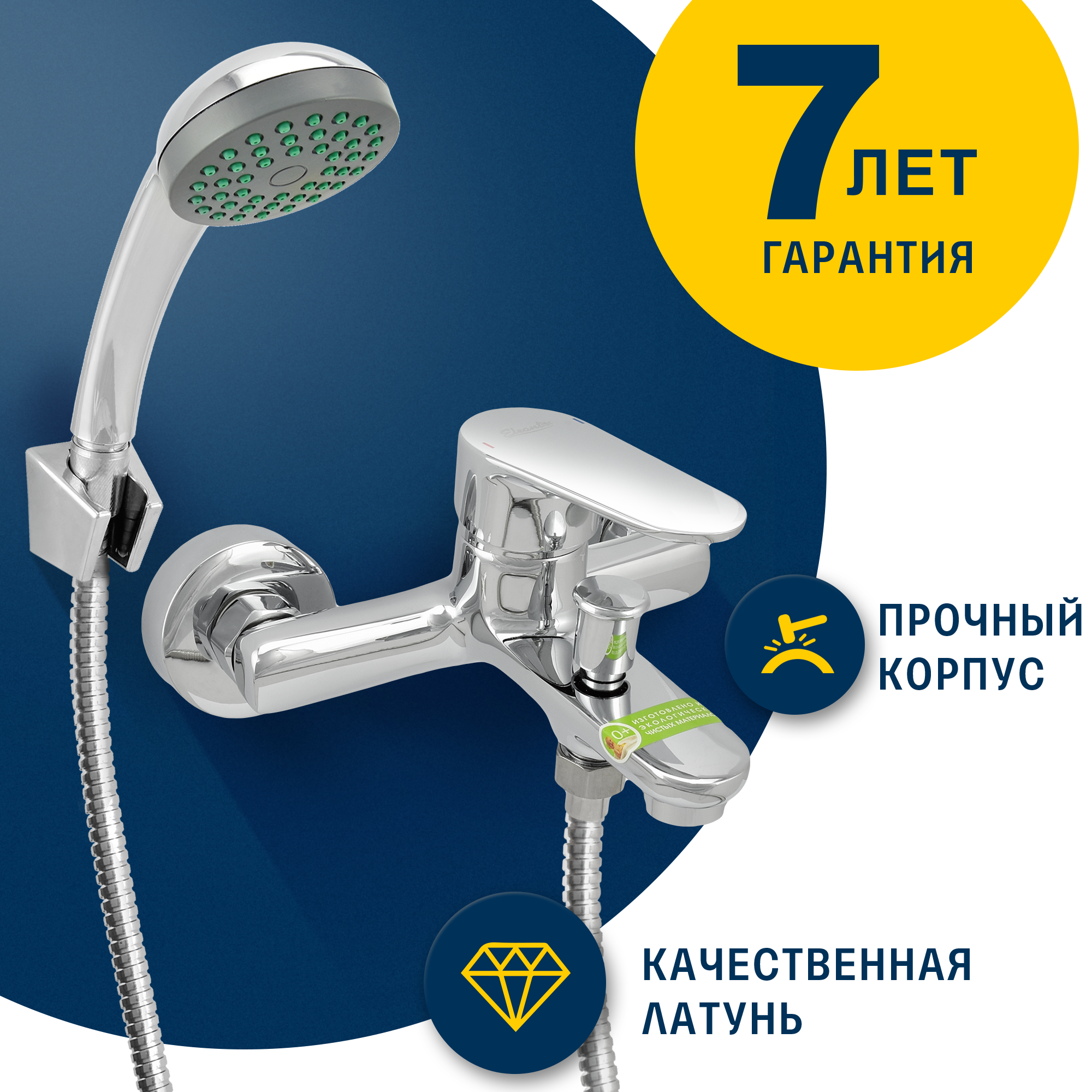 Смеситель ванно-душевой одноручный "Eleanti" с металлическим шлангом, хром. лейкой и кронштейном, EL интересное: