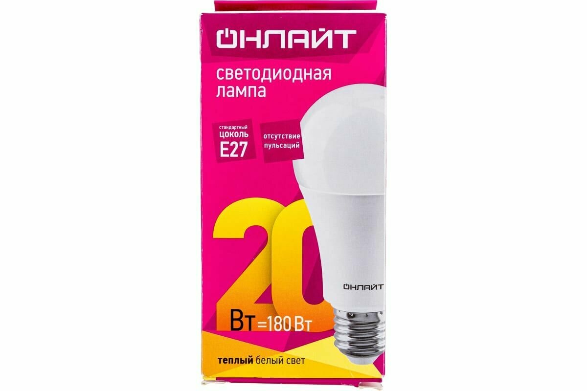 Лампа светодиодная онлайт 61157, E27, A60, 20 Вт, 2700 К
