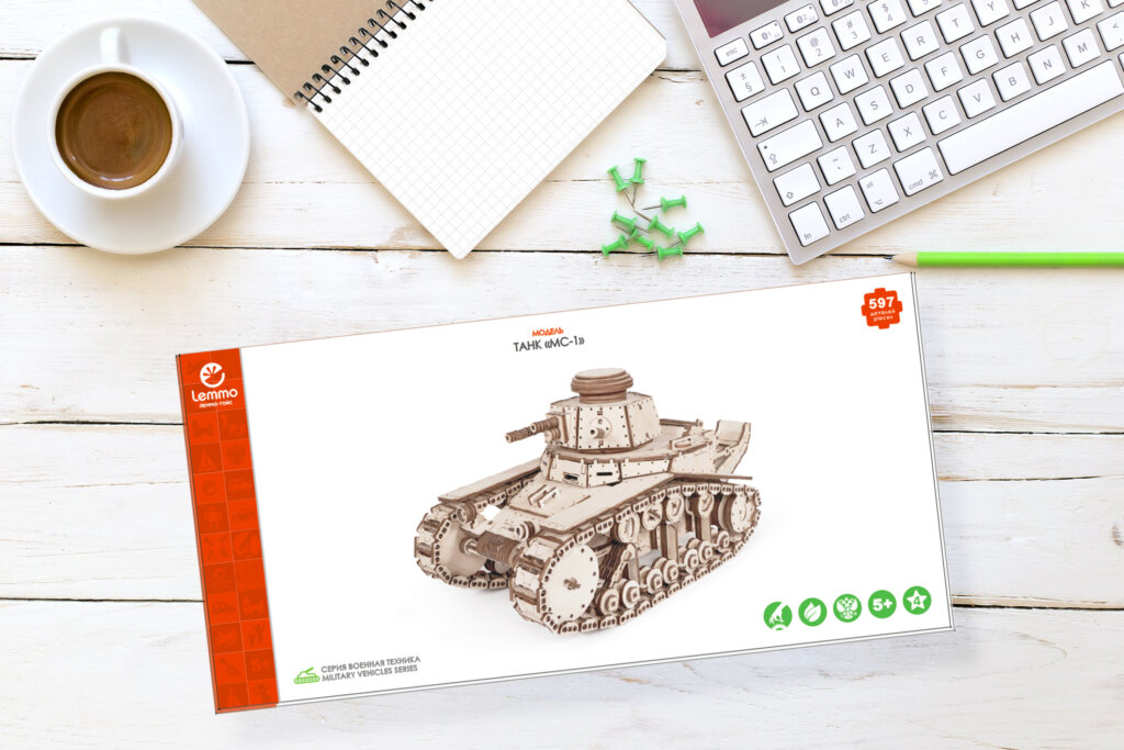 Деревянный конструктор Lemmo Танк МС-1, 574 детали