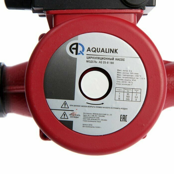 Насос циркуляционный Aqualink 25-8 180, напор 8 м, 120 л/мин Aqualink 7805310 .