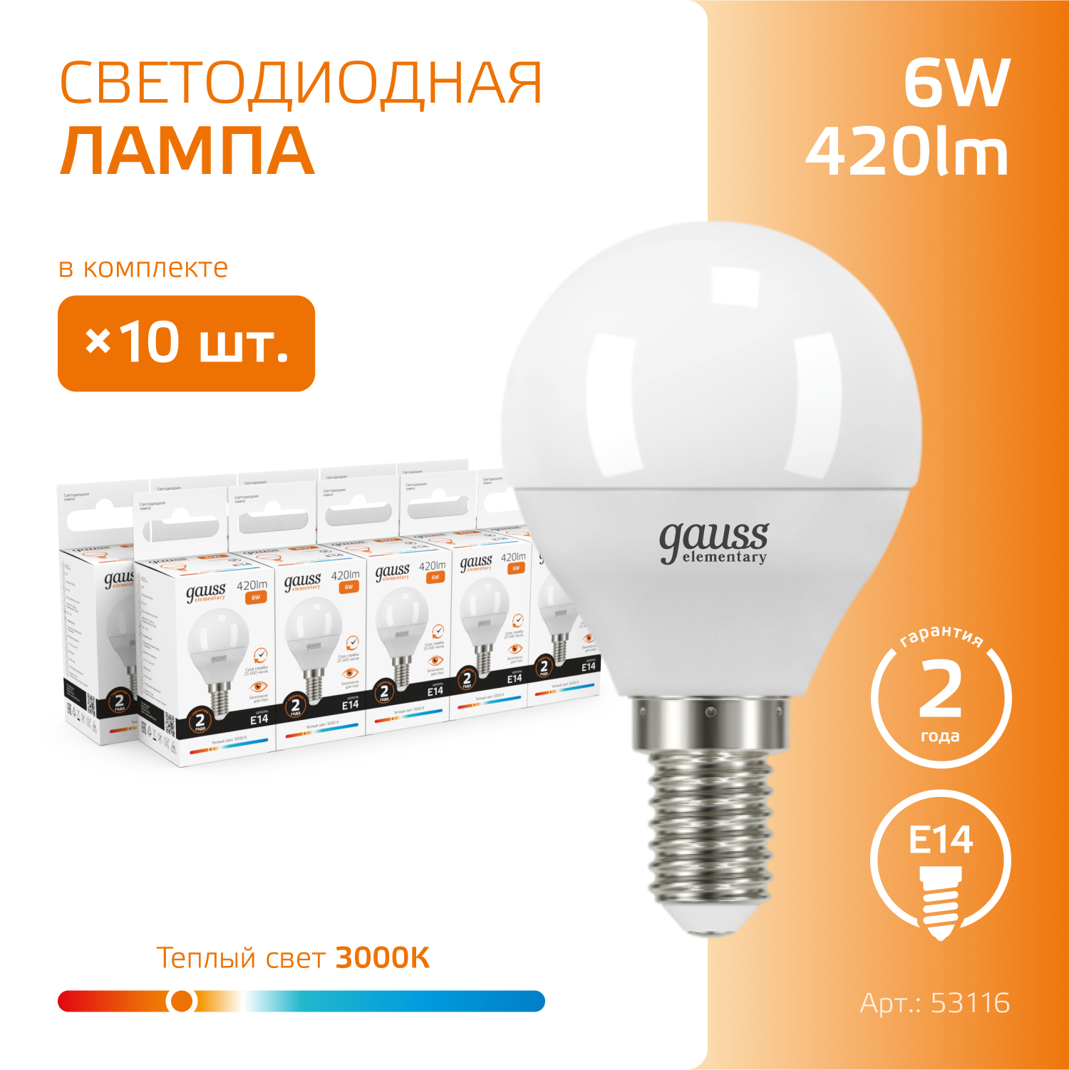 Купить Упаковка ламп LED GAUSS E14, шар, 6Вт, 10 шт. [53116]