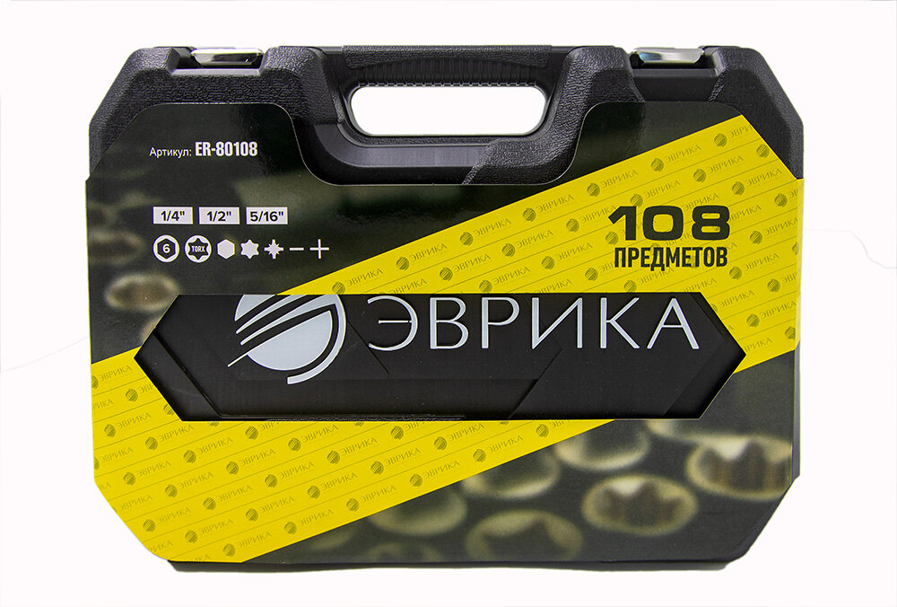 Купить Эврика Набор торцевых головок 1*4"&1*2"DR 6-гранный 108 предметов ER-80108