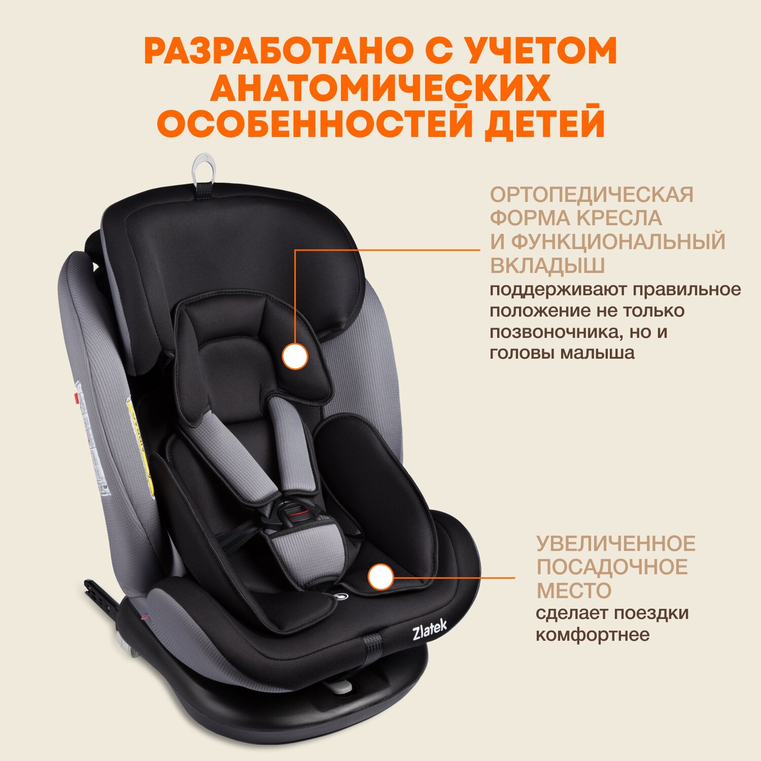 Автокресло детское Zlatek Cruiser Isofix поворотное с рождения до 12 лет / Isofix / 0+/1/2/3/до 36 кг 0-36кг / 0-12лет, серо-черный