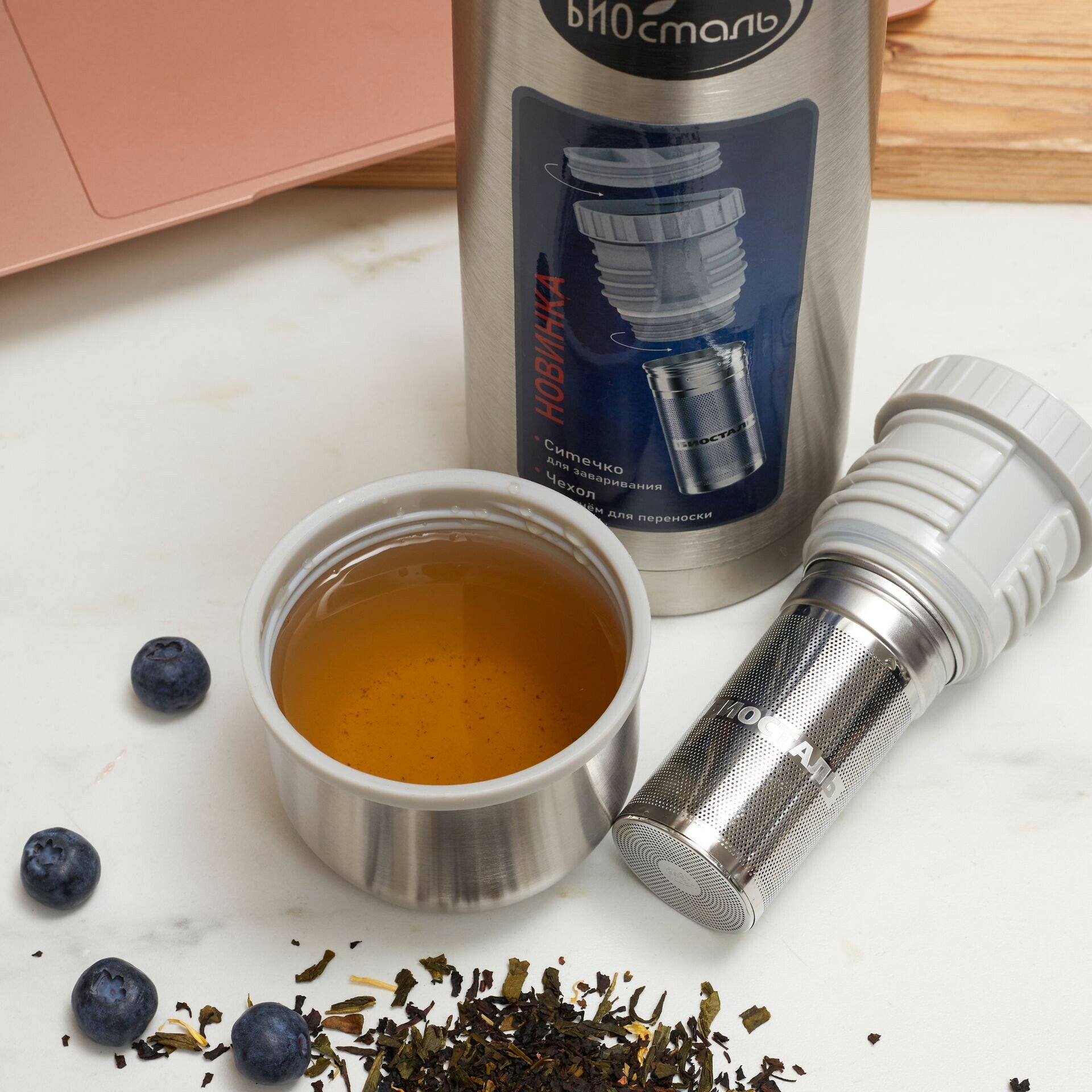 Термос Biostal (0,75 литра), с ситечком и чехлом, стальной