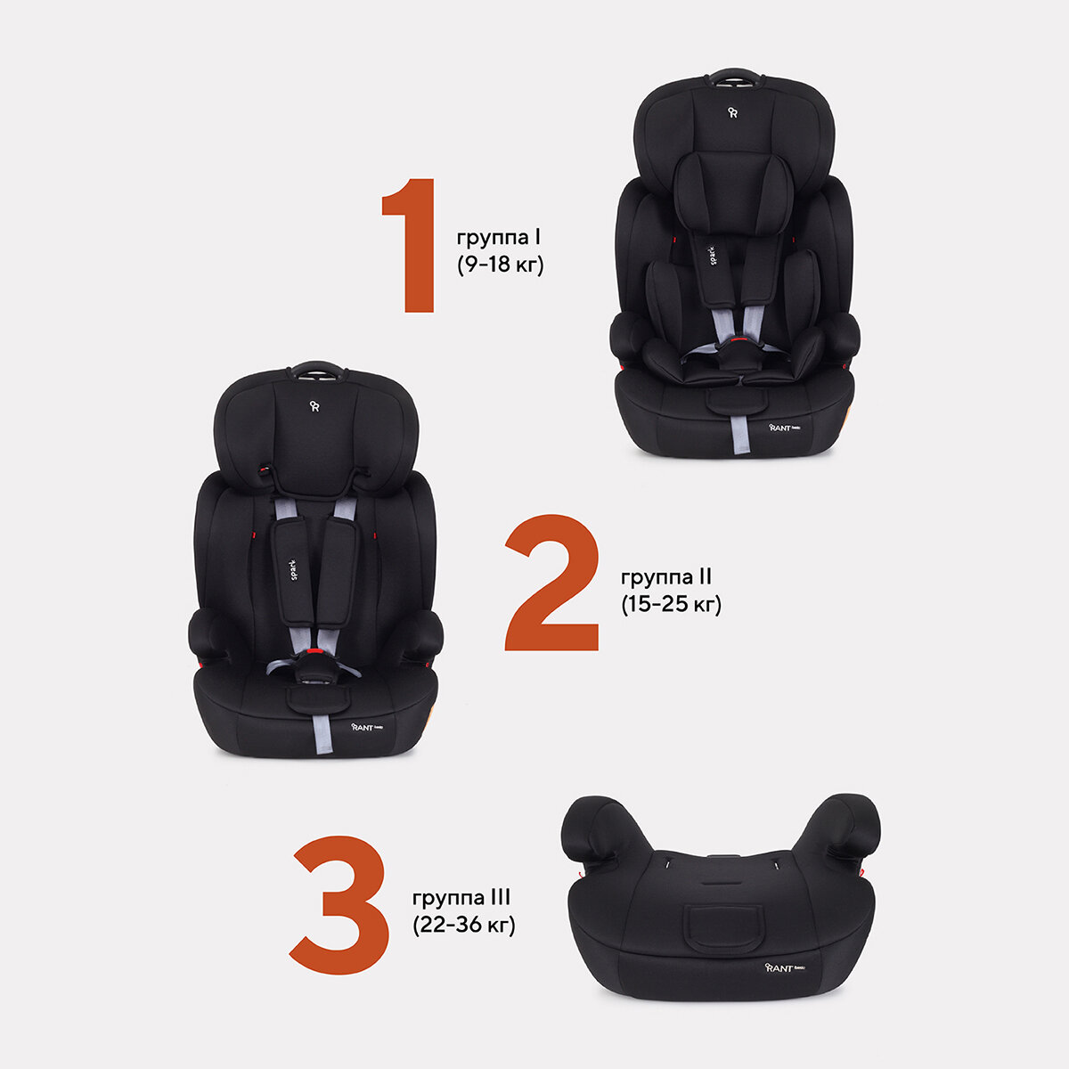 Автокресло детское Rant basic Spark арт. ZY10, группа 1/2/3 от 9 мес. до 12 лет вес 9-36 кг рост 80-145 см, Black