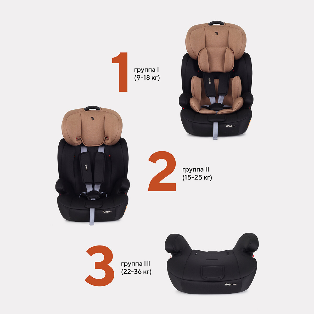 Автокресло детское Rant basic Spark арт. ZY10, группа 1/2/3 от 9 мес. до 12 лет вес 9-36 кг рост 80-145 см, Beige
