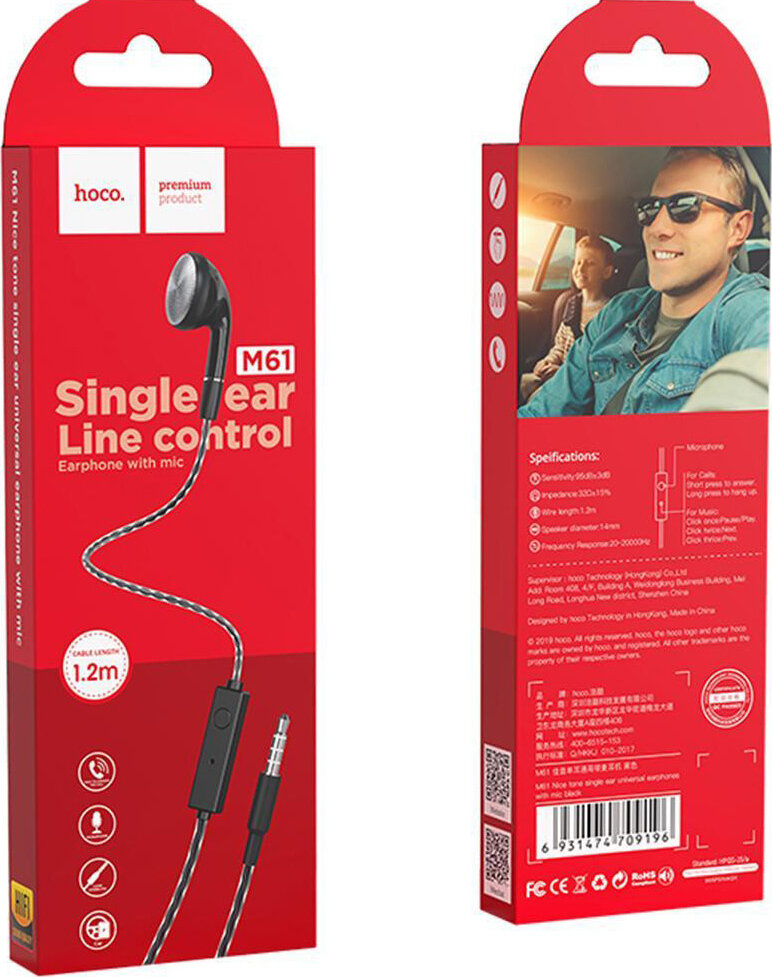 Наушники Hoco M61 Nice Tone на одно ухо, с микрофоном, черные