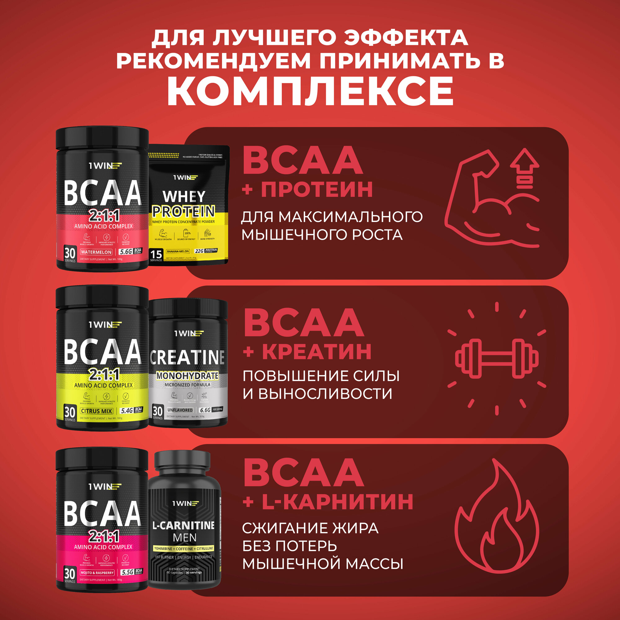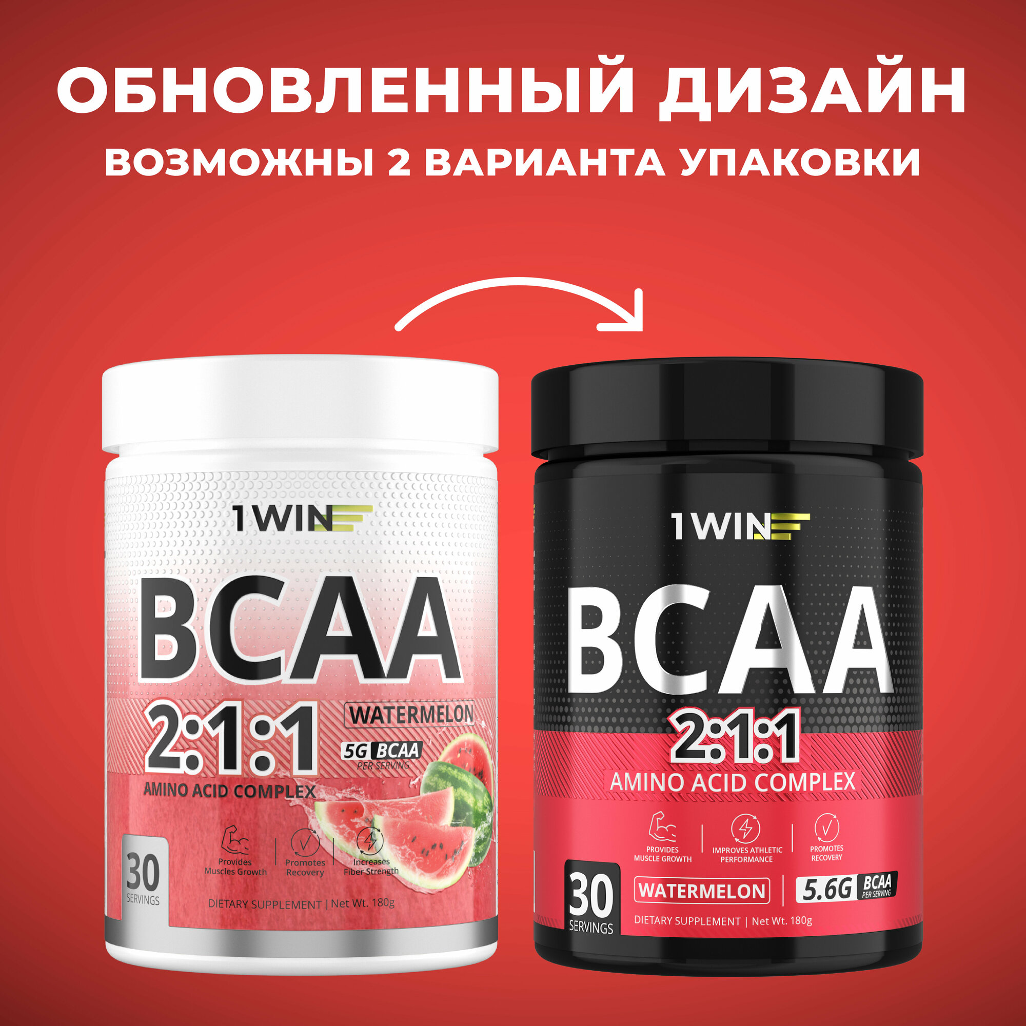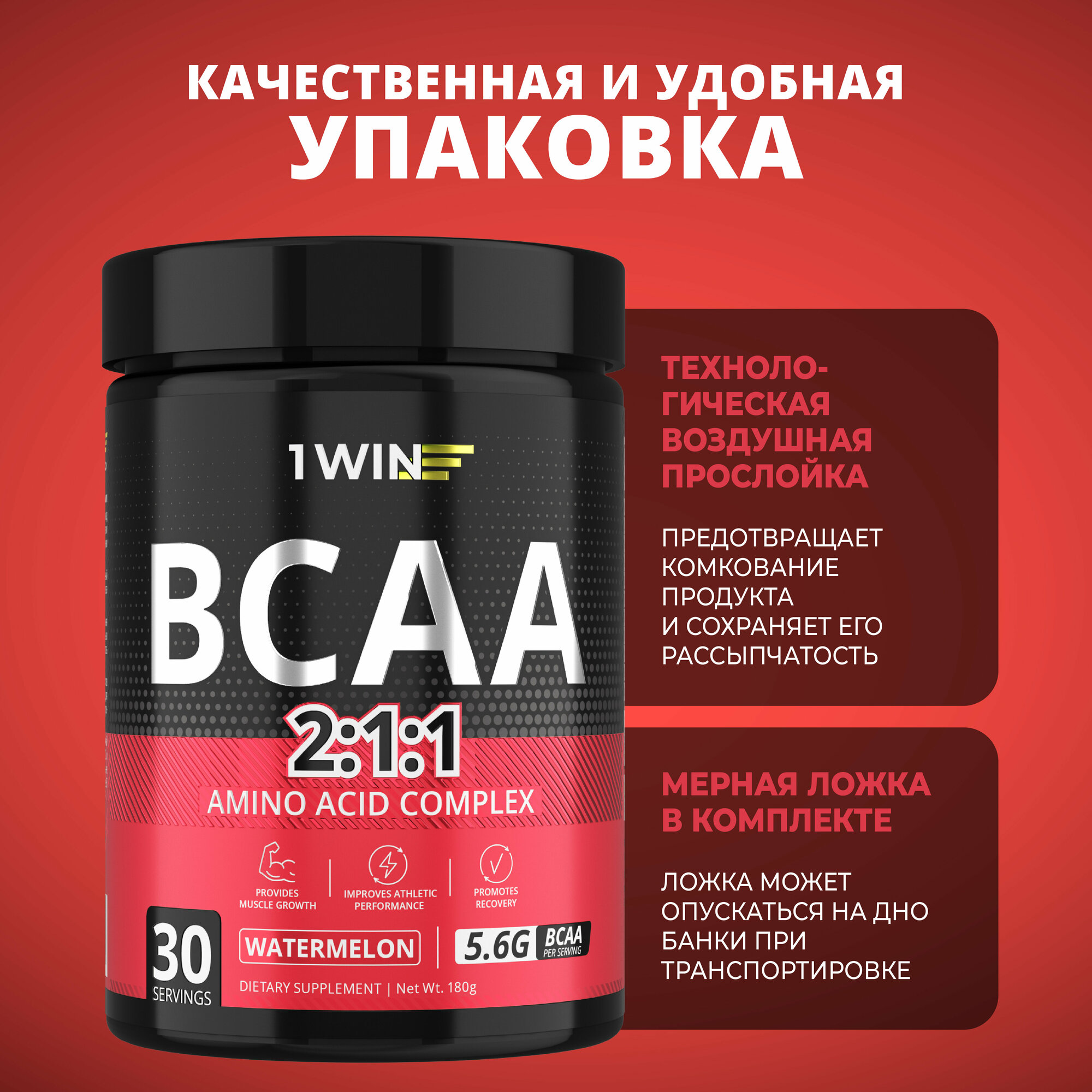 1WIN Аминокислоты BCAA 2:1:1 (БЦАА), Быстрорастворимые, со вкусом Арбуз, 30 порций, 180грамм