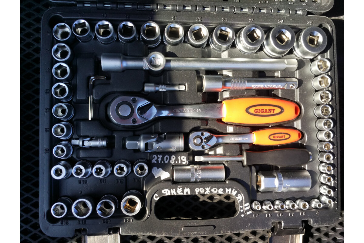 | Минусы: | Свечные головки с резинками они не закреплены внутри головки ( буду покупать магнитную), нет гибкого переходника,чтоб под углом крутить в труднодоступных местах. Небольшие койки на некоторых головках и элементах набора, на качество и работу не влияет. |