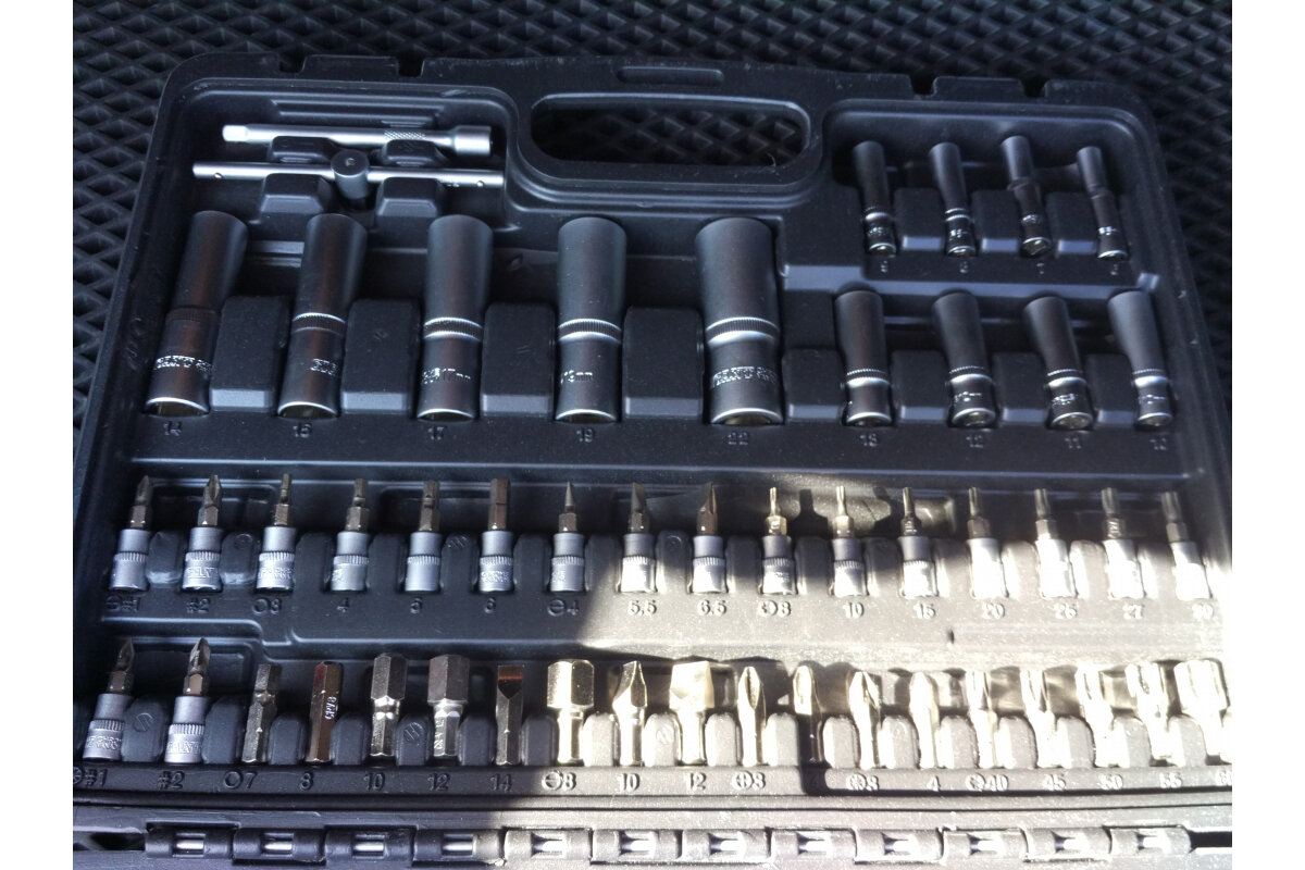 | Плюсы: | Цена, головки с насечками, все плотно лежит на своих местах в верхней крышки кейса, поверхность матовая не скользкая(не хромированные) трещотки 72 зуба с изогнутой ручкой,(специально так сделано чтоб крутить удобней от плоскости, чтоб руки не сбивать) для гаража и дома отличный инструмент |