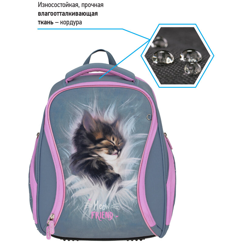 Ранец для девочки Berlingo ортопедический, Nova "Meow friend" 37х28х18 см, анатомическая спинка (RU07213)