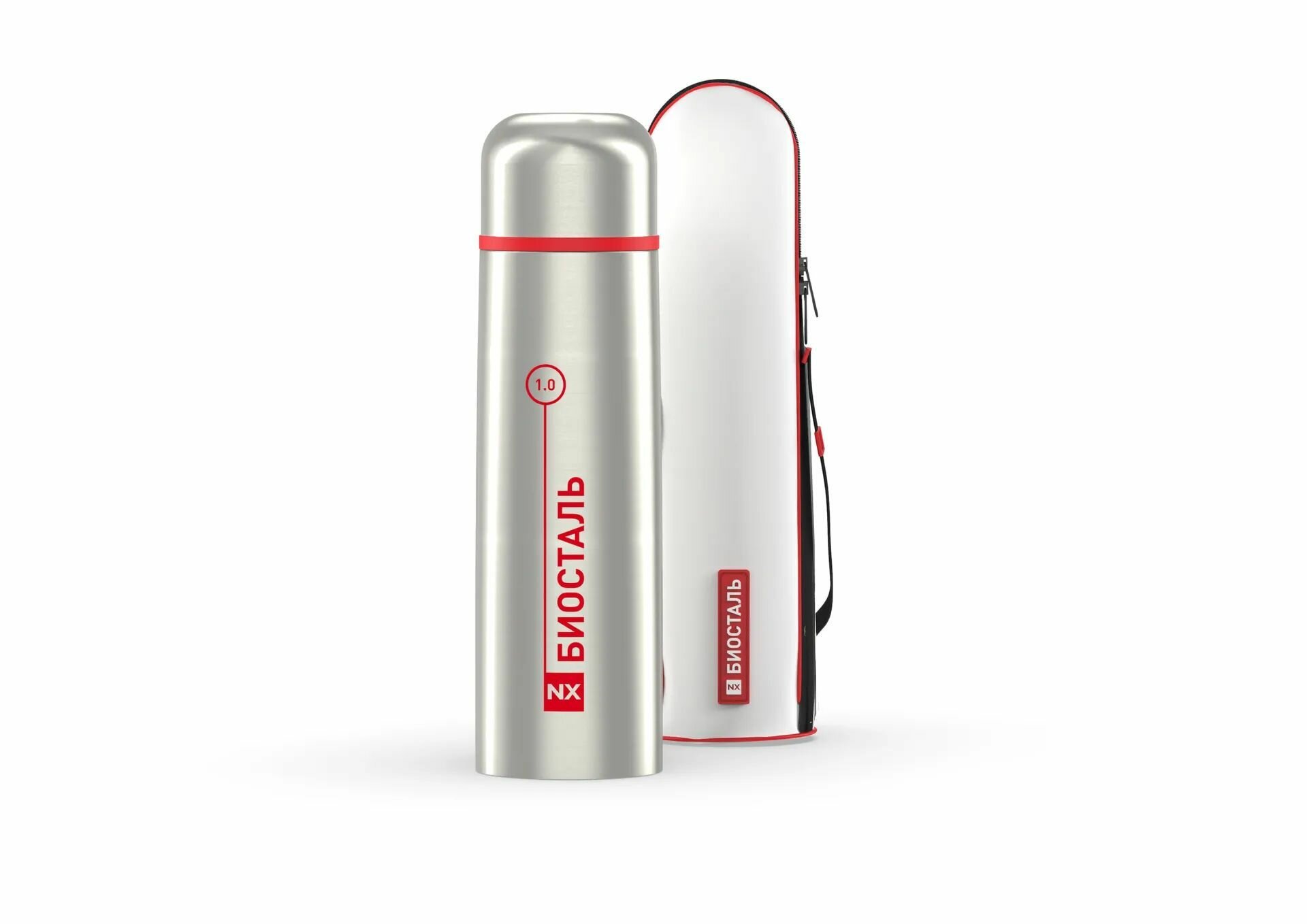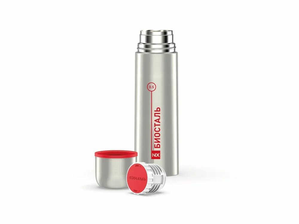 Термос биосталь NX-1000B 1л, серебристый/красный