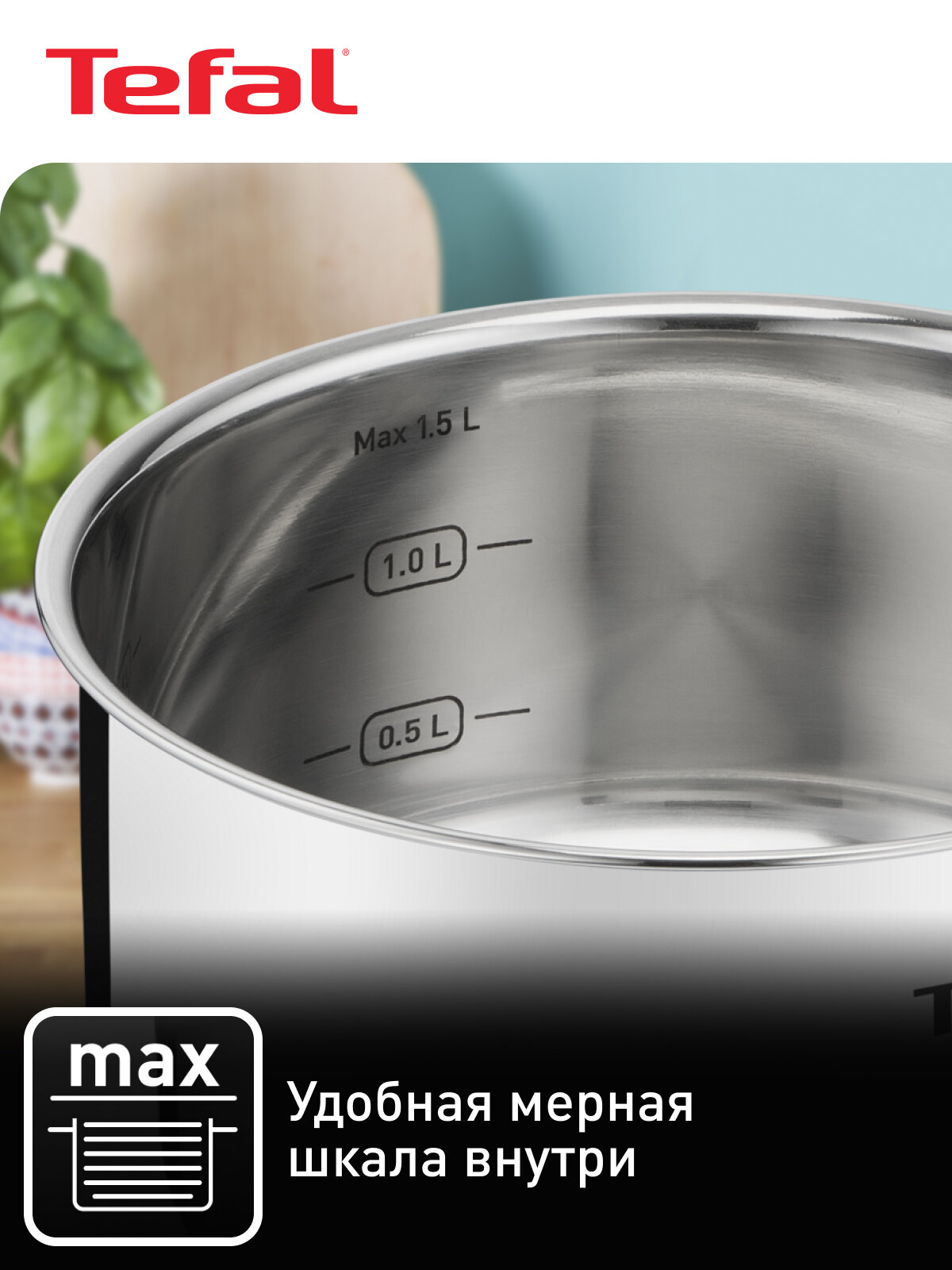СохранитьНабор посуды из 4 предметов Tefal Cook Eat: сковорода 28 см, ковш 16 см, кастрюля 20 см, крышка, подходит для индукции интересное: