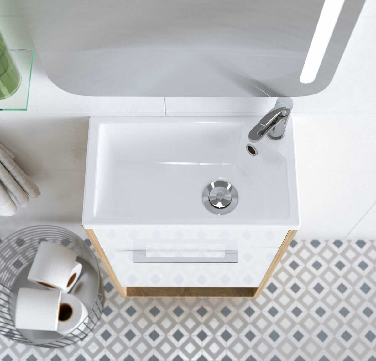 Тумба с раковиной в ванную Lira 40 Напольная/Подвесная Белый глянец Левая У85921