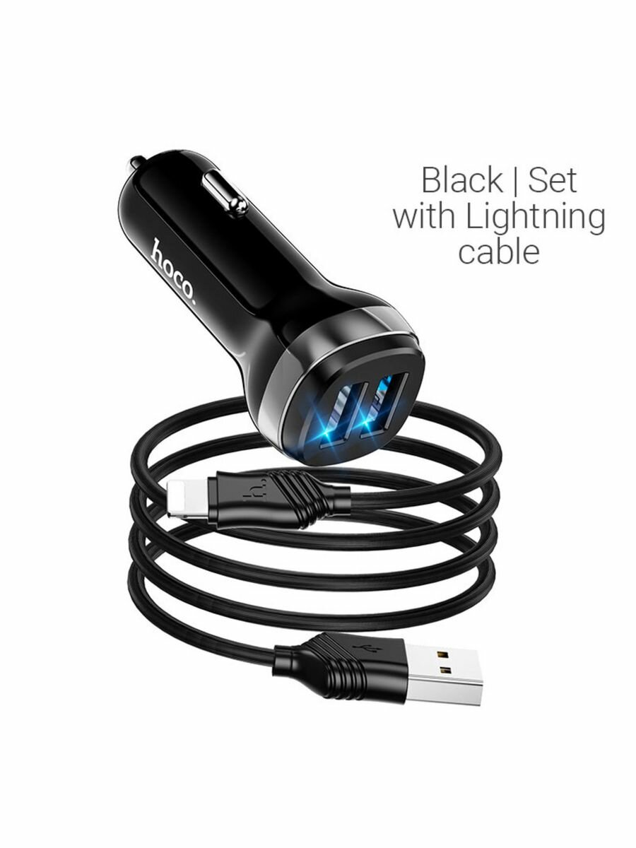 Автомобильное зарядное устройство Z40 2USB 2.4A черное HOCO