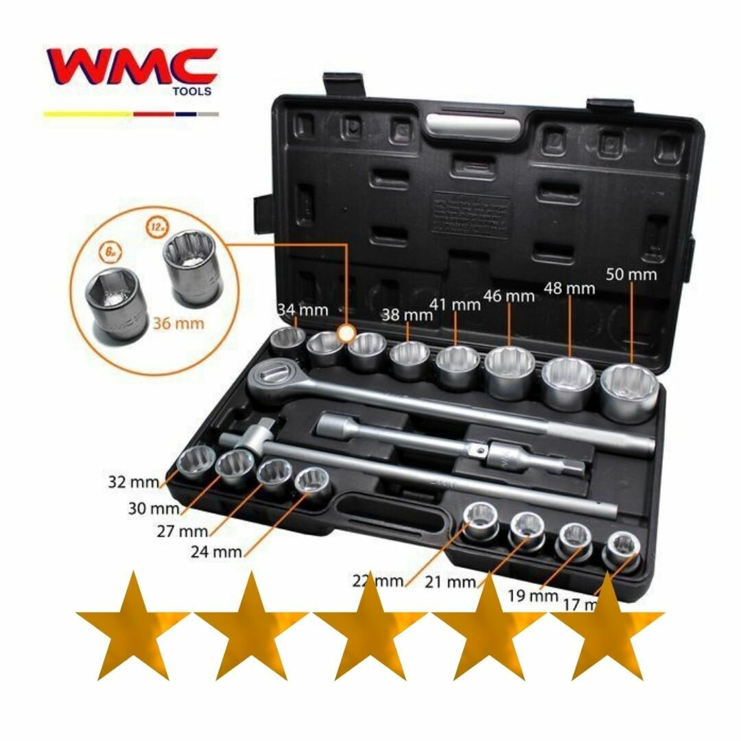 Ниже Вы можете прочитать отзывы на WMC TOOLS WMC6201B Набор головок торцевых 3/4 12-ти гран.17-50мм, 36мм-6-ти гран. 21 предмет WMC TOOLS, ознакомится с подробными характеристиками, посмотреть интересные обзоры и фотографии на WMC TOOLS WMC6201B Набор головок торцевых 3/4 12-ти гран.17-50мм, 36мм-6-ти гран. 21 предмет WMC TOOLS.