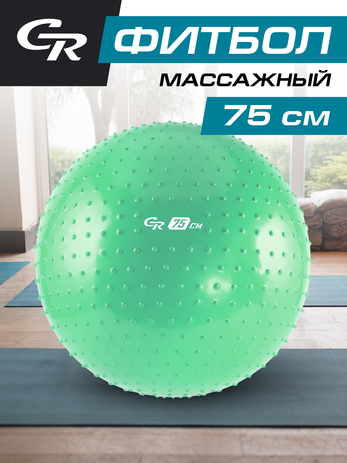 Мяч гимнастический массажный, фитбол, для фитнеса, для занятий спортом, диаметр 75 см, ПВХ, мятный, JB0210557 интересное: