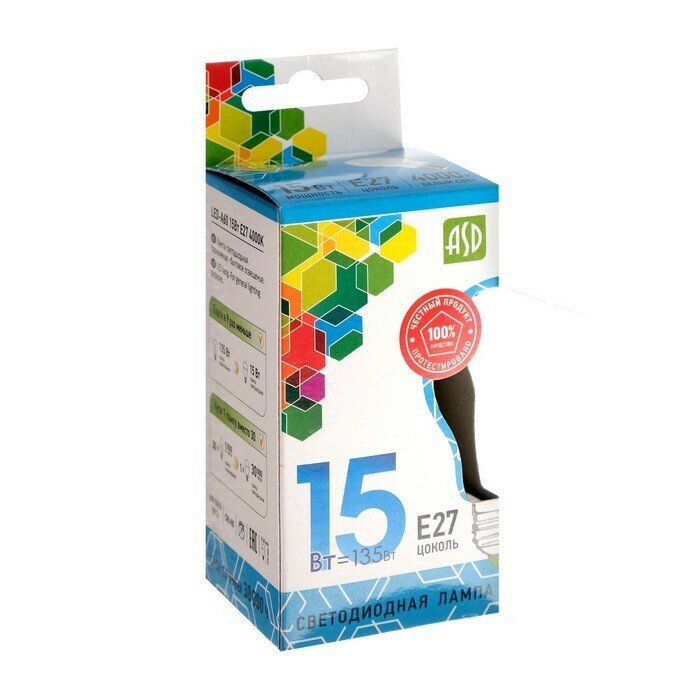 ASD Лампа светодиодная ASD LED-A60-standard, Е27, 15 Вт, 230 В, 4000 К, 1350 Лм интересное: