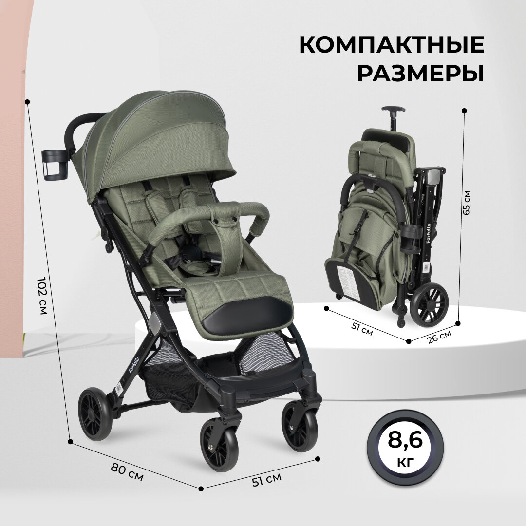 Купить Коляска прогулочная складная Farfello Comfy Go Comfort, оливковый