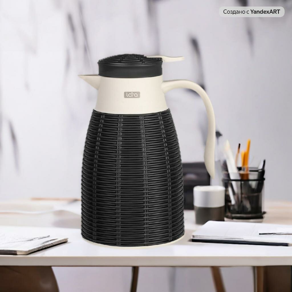 Lara LR04-80 термос Black - 1000 мл, стеклянная колба, стилизация под ротанг, долгое сохранение