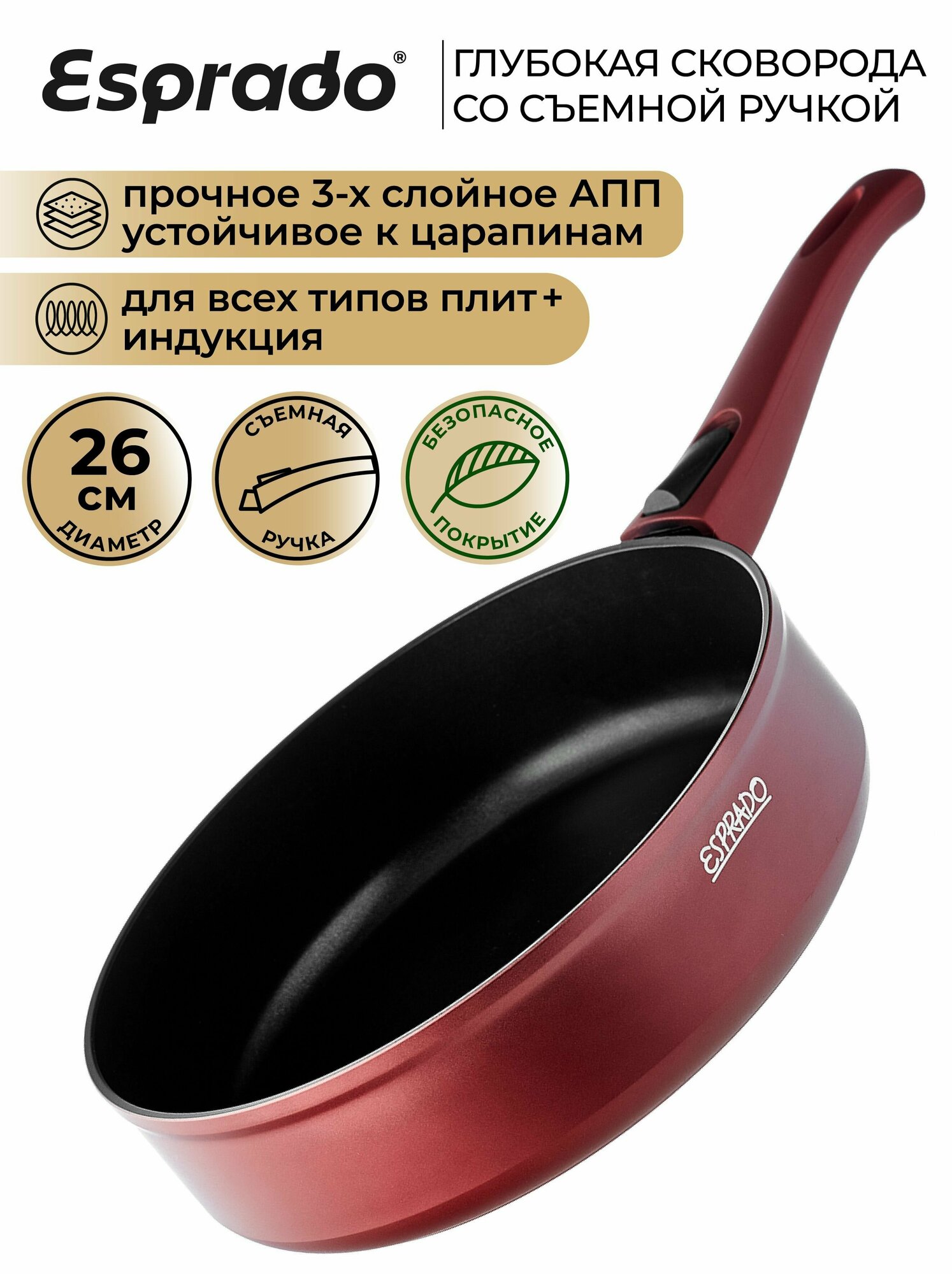 Сковорода глубокая ESPRADO Terceo со съемной ручкой, 26*7 см
