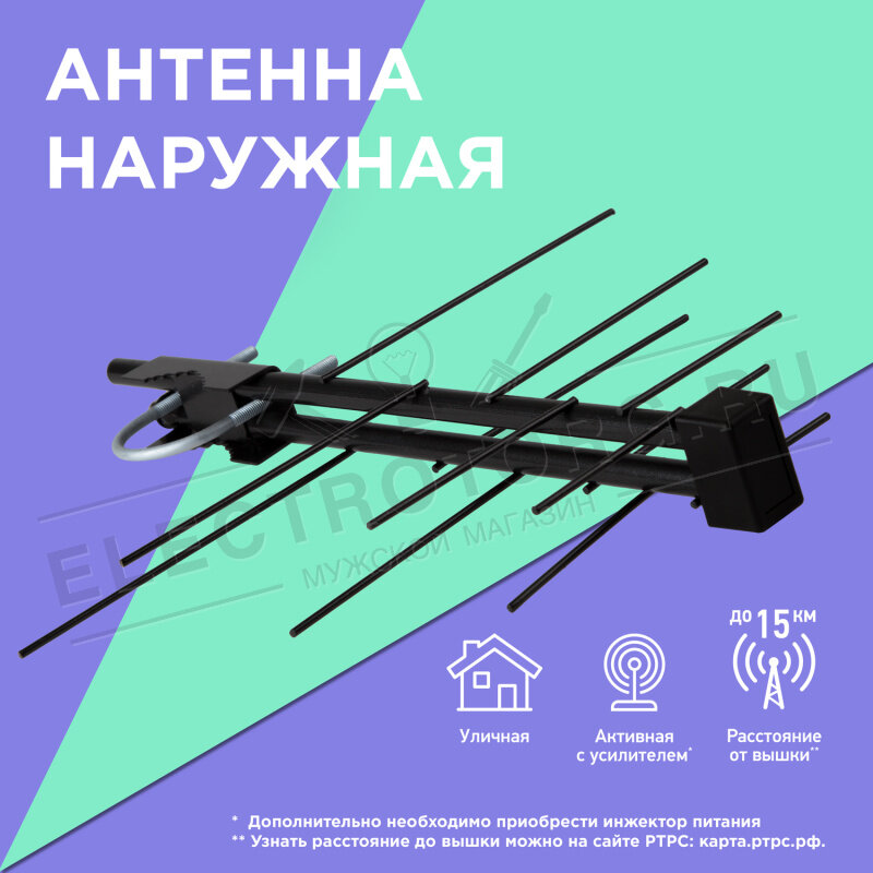 Антенна уличная ТВ активная для аналогового и цифрового ТВ - DVB-T2 (модель RX-422) (пакет) REXANT
