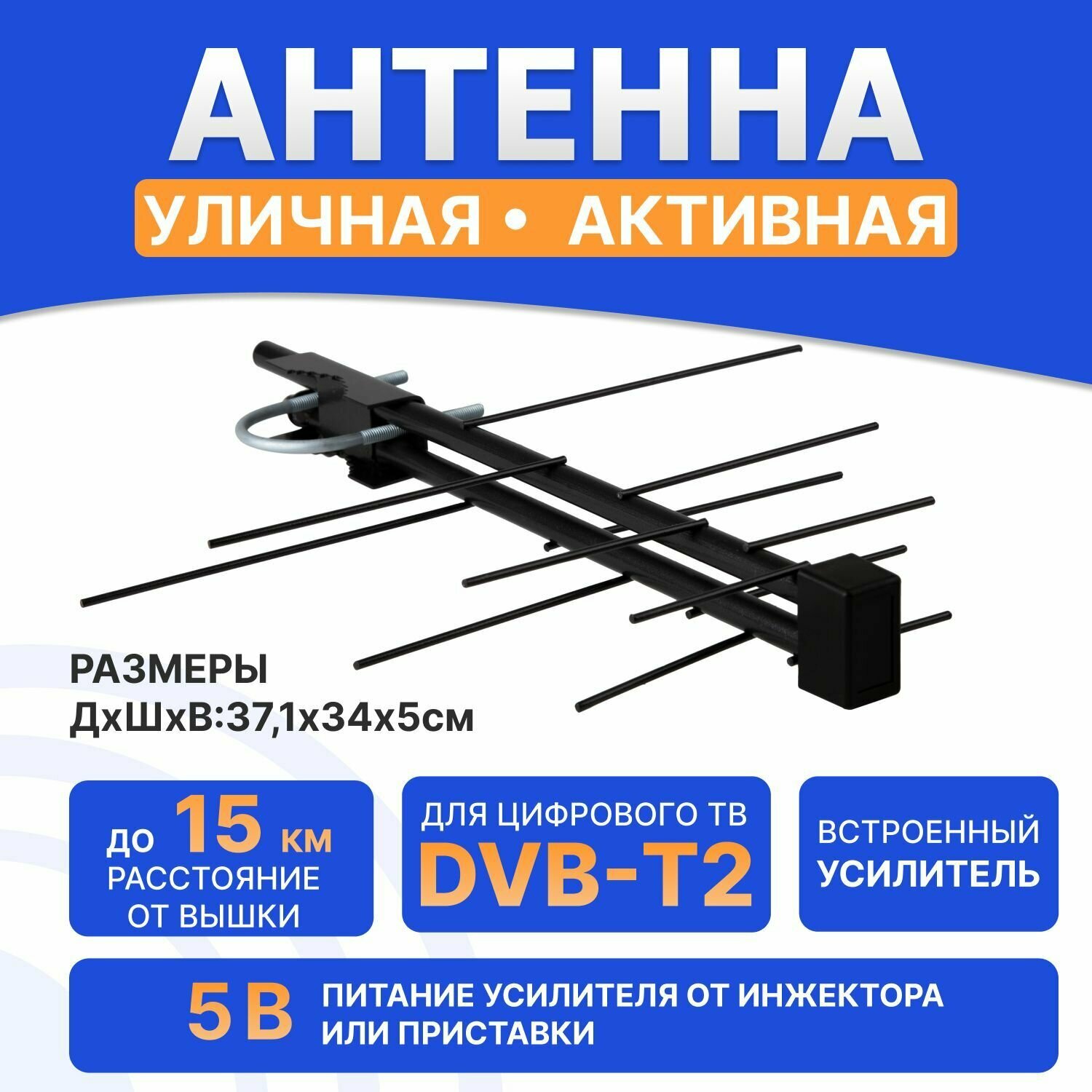 Антенна уличная REXANT для аналогового и цифрового ТВ DVB-T2, активная