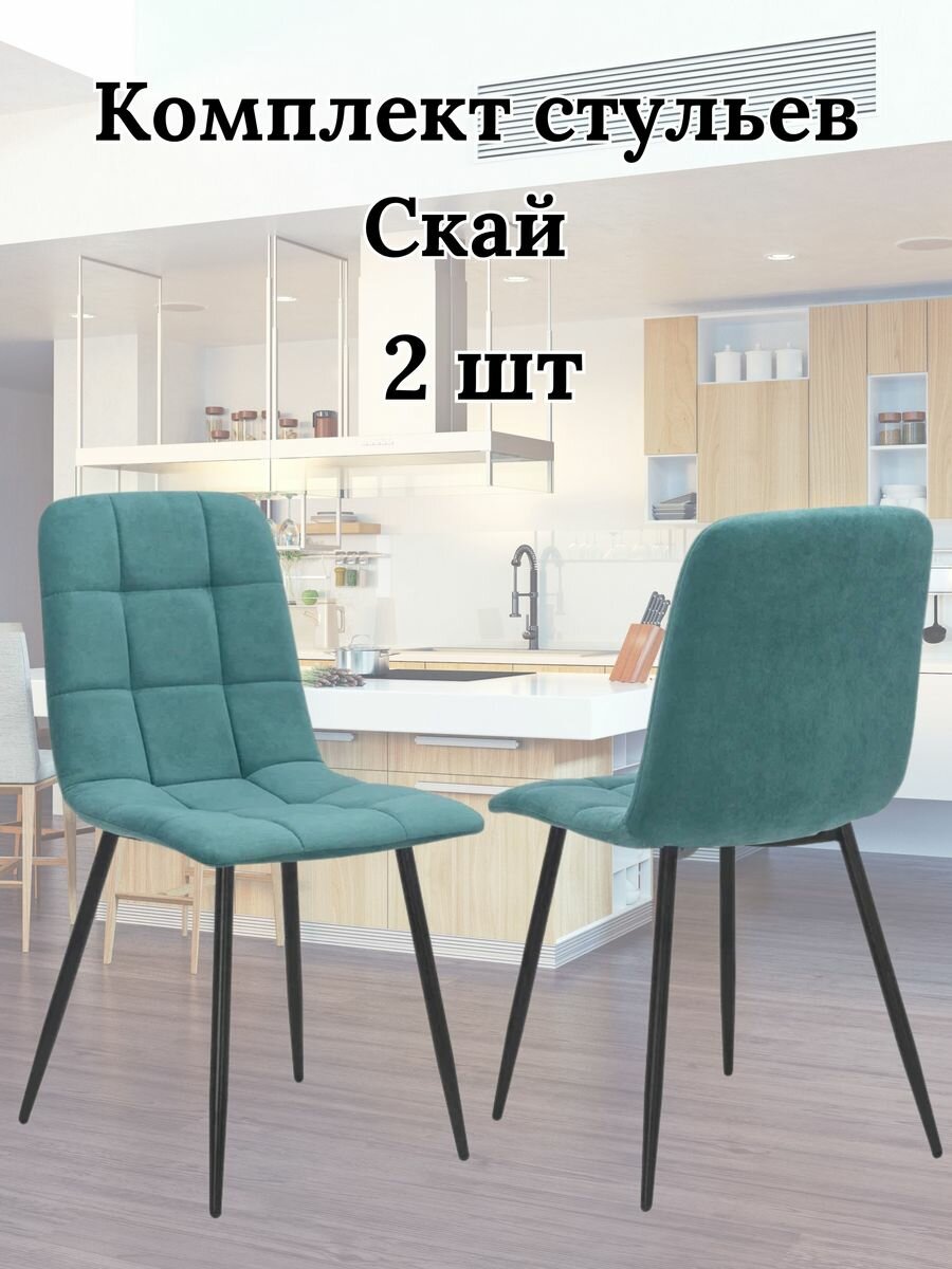 Стулья для кухни 2 штуки, Стул кухонный Sky Pro, металл Черный, велюр Ментол
