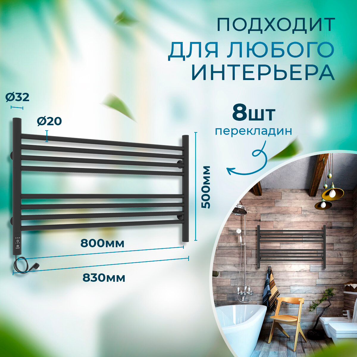 Полотенцесушитель электрический Laris Оливия ЧКЧ8 800мм 500мм левое подключение RAL 9005 (черный матовый муар) с таймером и терморегулятором