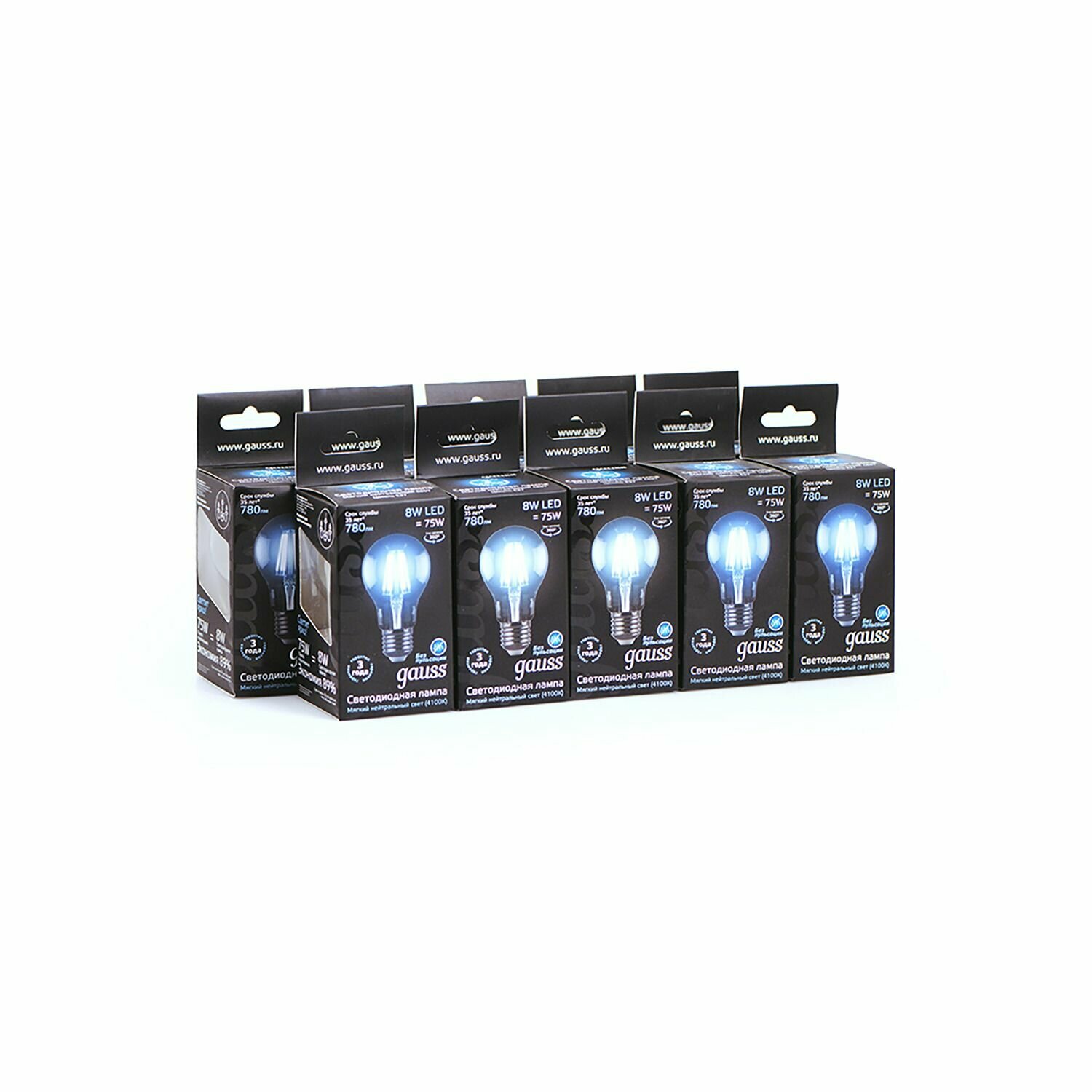 Упаковка ламп 10шт Gauss Filament А60 8W 780lm 4100К Е27 LED 1/10/40