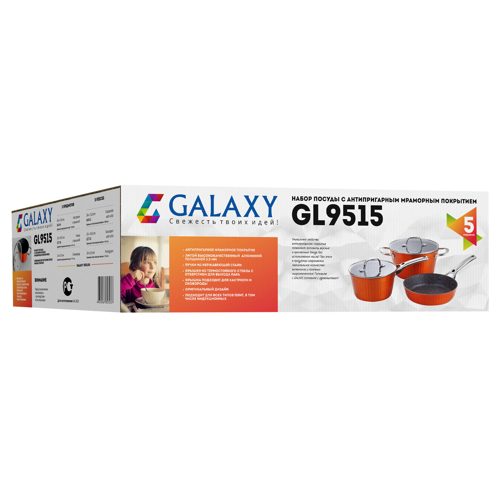 Набор посуды Galaxy GL 9515 оранжевый 5 пр. антипр.покр. для всех типов плит