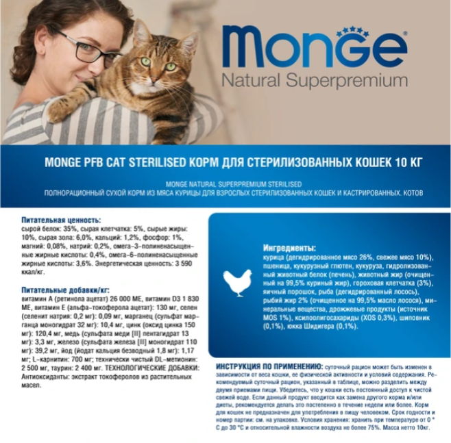 Купить Сухой корм Monge PFB Cat Daily Line Sterilised для стерилизованных кошек, из курицы 10 кг