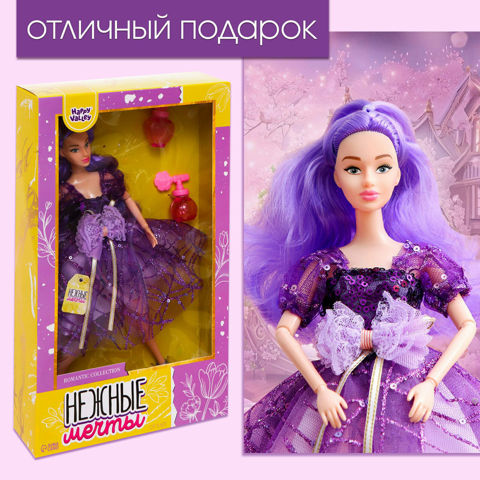 Happy Valley Кукла-модель «Нежные мечты» с аксессуарами, фиолетовые волосы