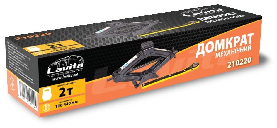 Домкрат механический LAVITA, LA 210220, 2Т; Min:110-Max:440; Картонная упаковка